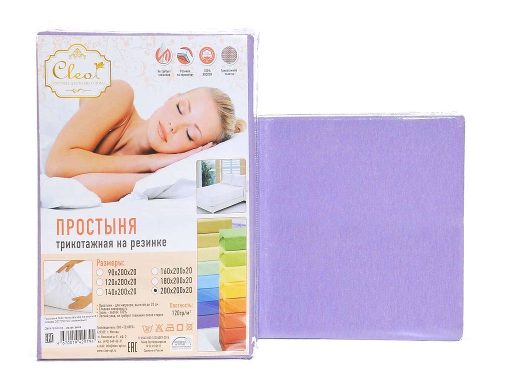 Простыня на резинке из хлопкового трикотажа производится на фабрике Cleo с использованием высокотехнологичного оборудования и контролем качества на всех этапах изготовления, поэтому приобретая простыню Cleo в официальном магазине, Вы можете быть уверены, что покупаете качественный товар.